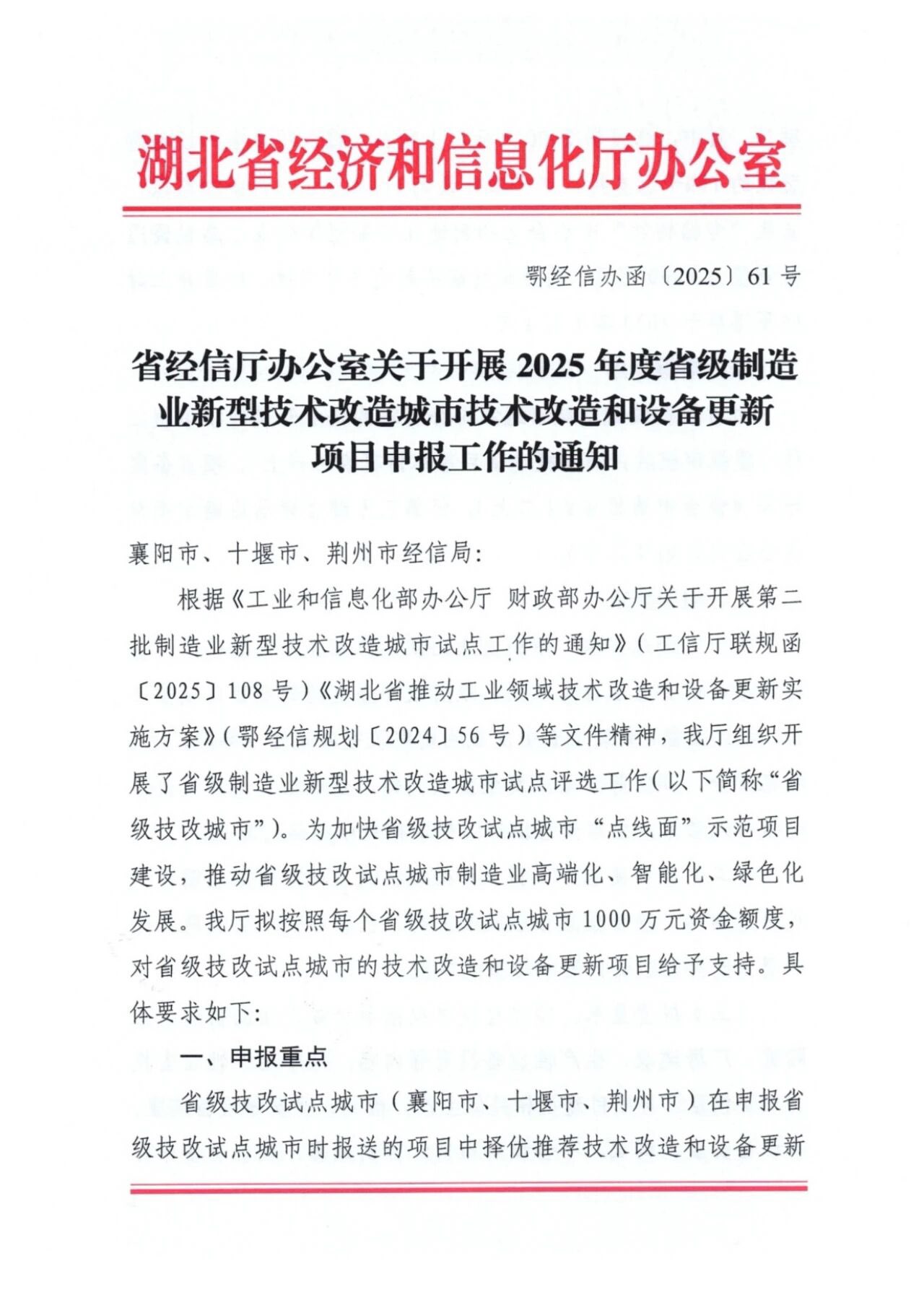 各相关企业:根据《湖北省制造业“揭榜挂帅”项目实施工作指引(试行)》规定的工作流程,就开展2025年度第一...