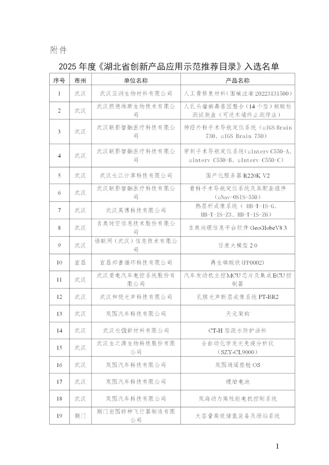 附件:2025年度《湖北省创新产品应用示范推荐目录》入选名单