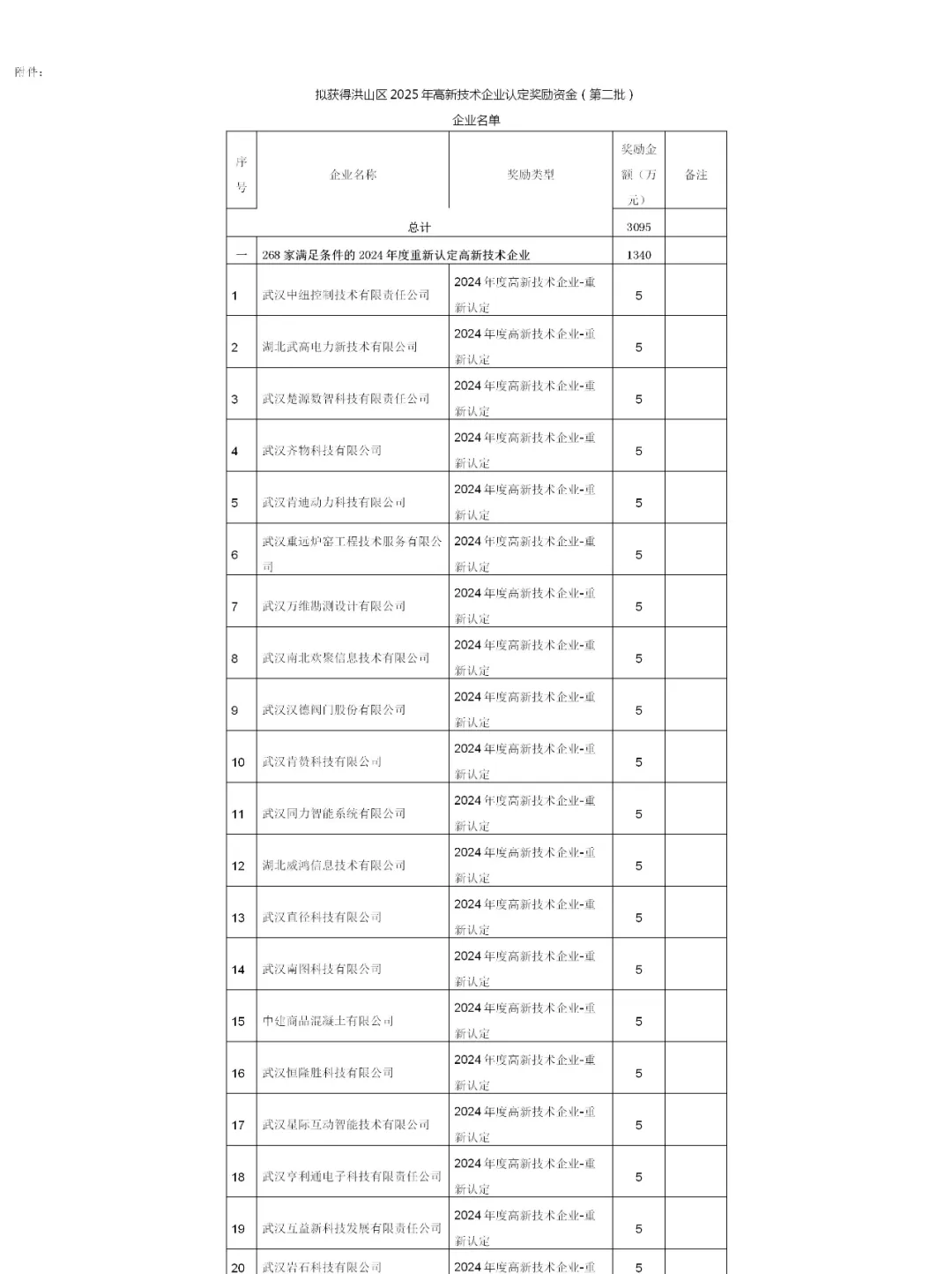 附件:拟获得洪山区2025年高新技术企业认定奖励资金(第二批)企业名单