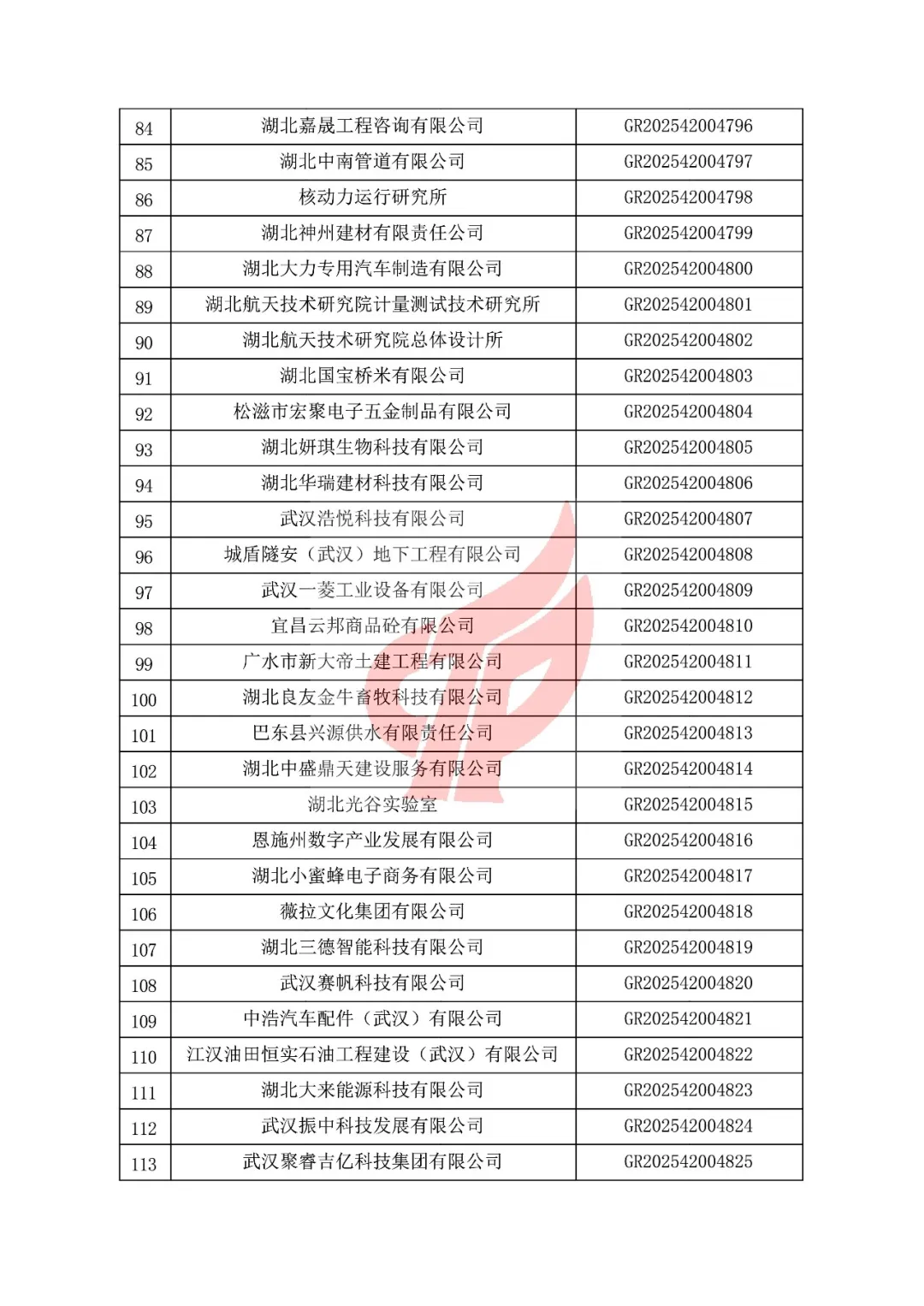 根据《高新技术企业认定管理办法》(国科发火〔2016〕32号)和《高新技术企业认定管理工作指引》(国科发火〔2016〕195号)有关规定,现对湖北省认定机构2025年认定报备的第四批865家高新技术企业备案名单(详见附件)予以公告。