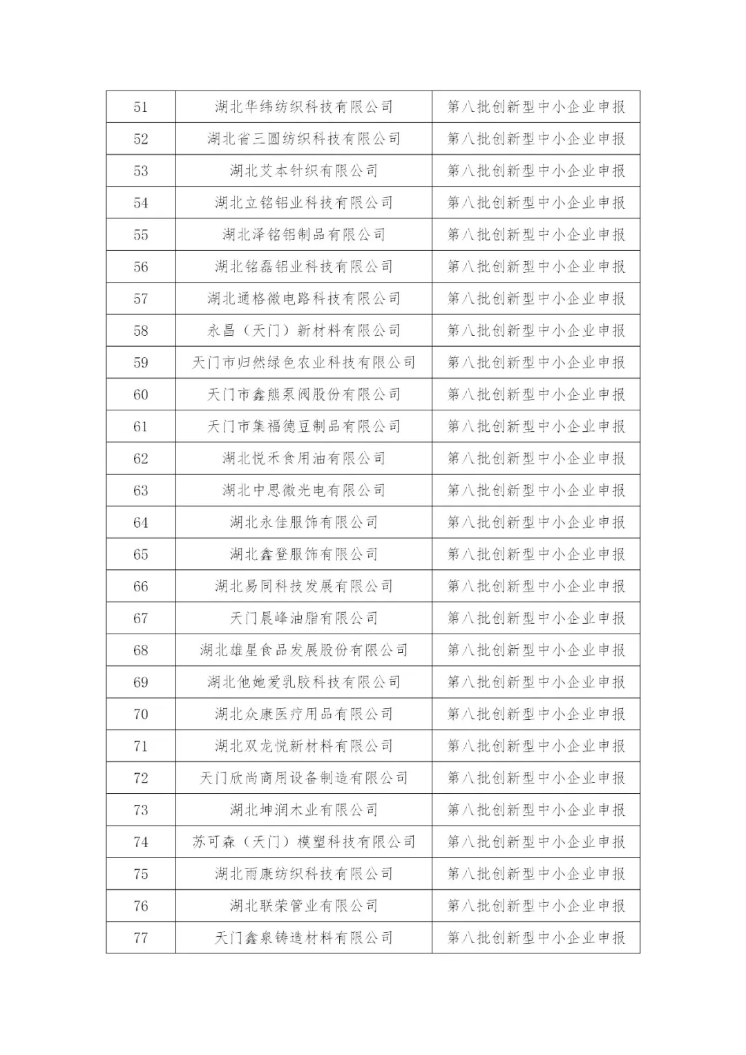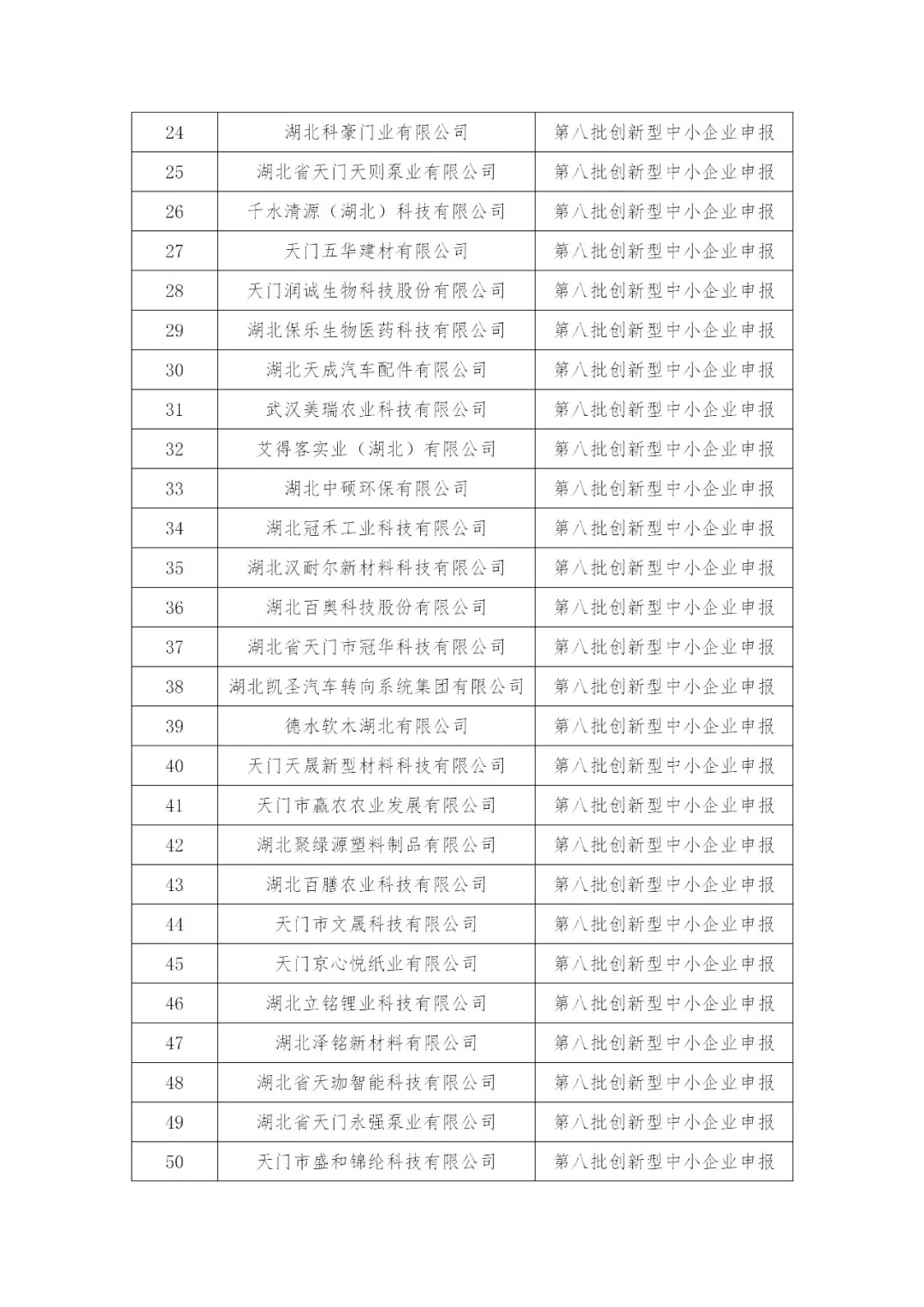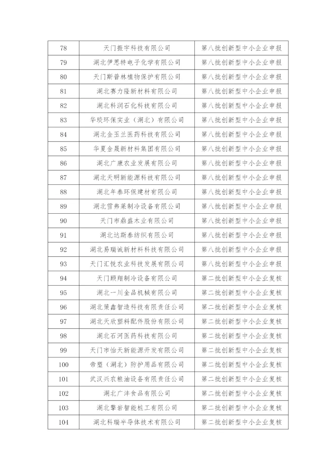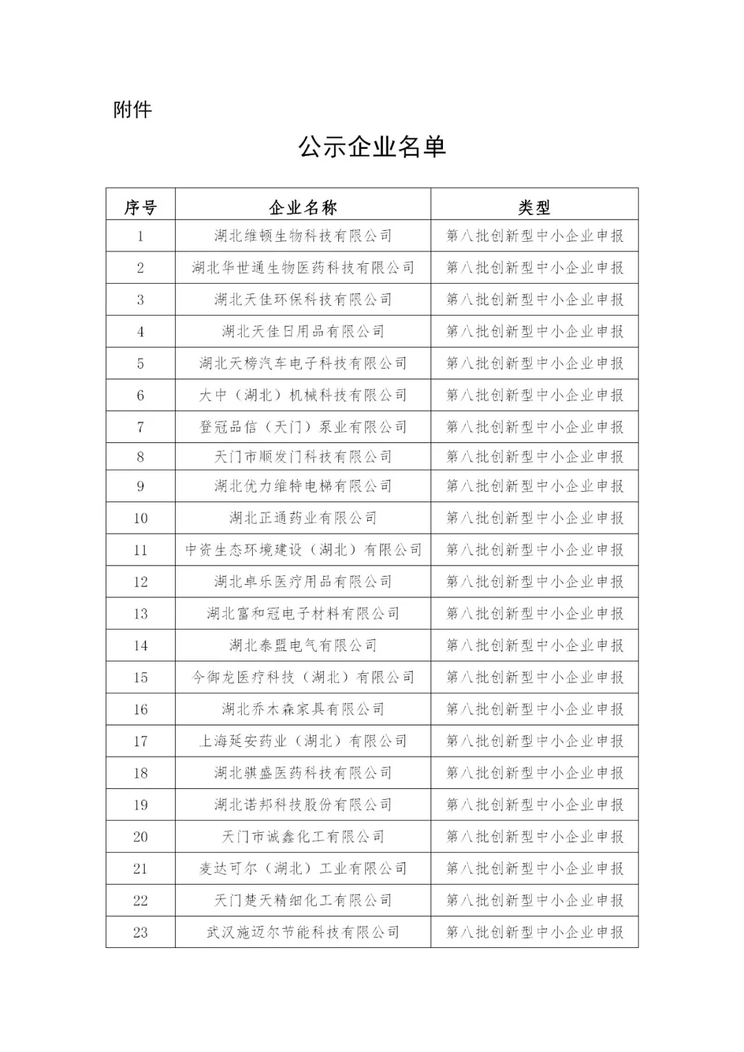 关于天门市拟通过湖北省第二批创新型中小企业复核与第八批申报评价名单的公示